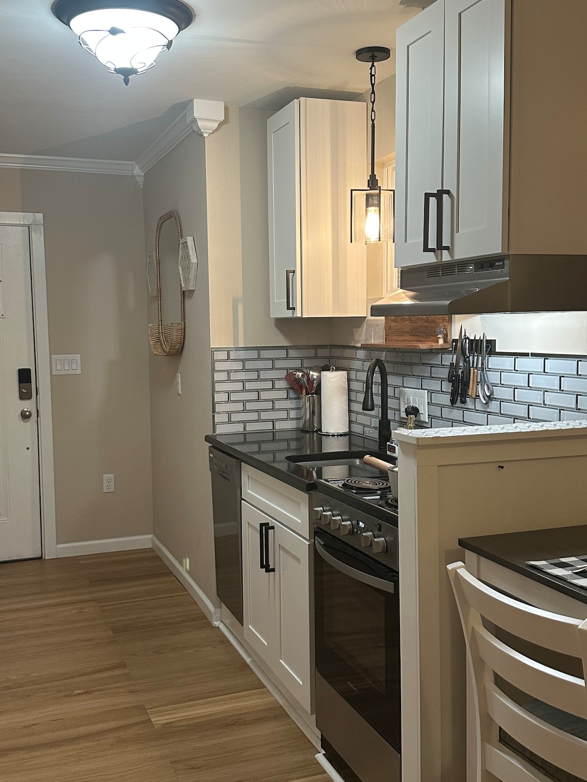 This cozy countryside retreat offers a spacious kitchen and living area where you can unwind, cook your favorite meals, and enjoy Roku TV in comfort. Bring your furry friends along—our pet-friendly space gives them plenty of room to roam both inside and out. High-speed internet/dedicated workspace make it perfect for working remotely. Relax on the back porch overlooking apple trees & nearby horses. 10 minutes from regional airport. 25 minutes from Charlotte and 10 minutes from dining & grocery.