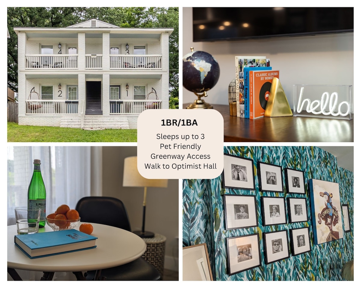 📍This listing is for the upper left hand unit. You've arrived! Whether you're in Charlotte for the weekend or planning an extended stay; Optimist Quad is ready to be your home away from home. O.Q. is conveniently located on the Little Sugar Creek Greenway; walking distance to some of Charlotte's staple establishments (Birdsong, ACE #3, Optimist Hall, Rosie's Wine Bar, Sweet Lew's)...all <0.7mi.