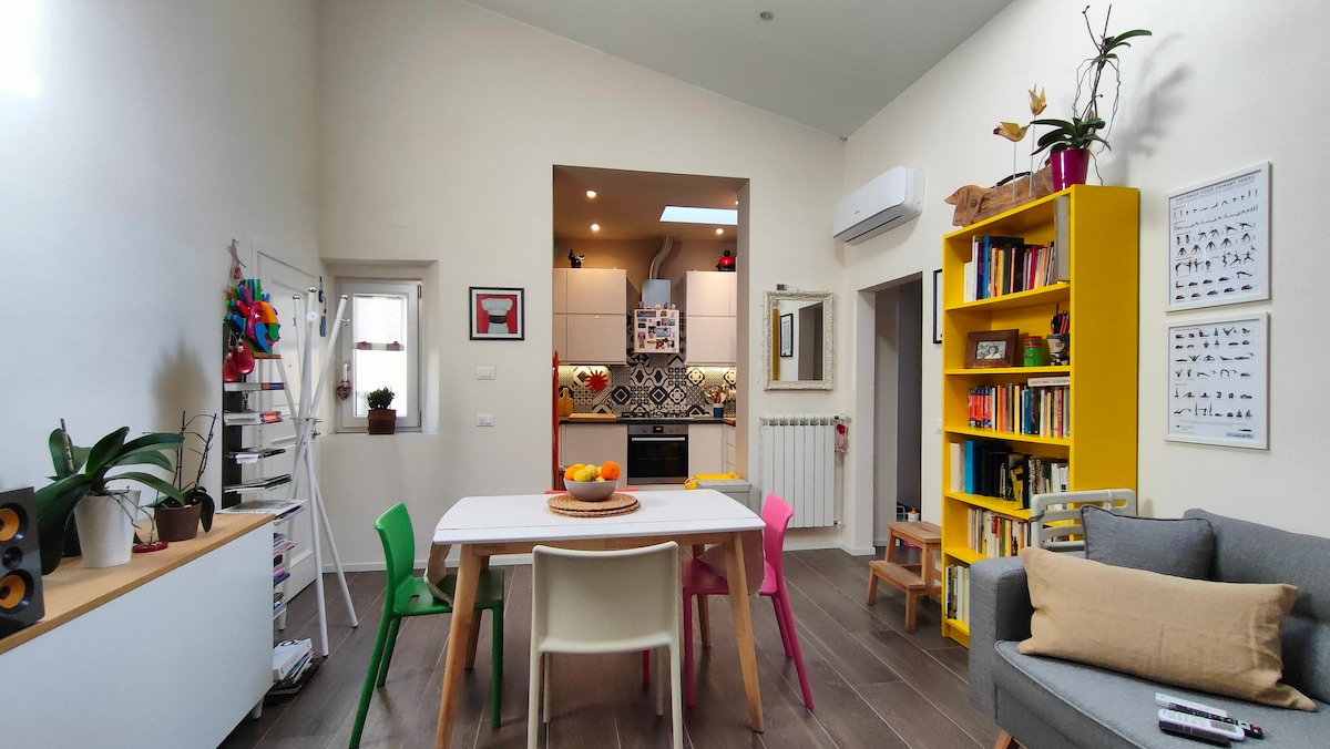 Accogliente Loft composto da tre vani appena ristrutturato, può ospitare max due persone, ingresso comune all'interno di una piccola palazzina, si trova al secondo ed ultimo piano senza ascensore (solo due rampe) Facilità di parcheggio in zona, nell'area non ci sono parcheggi a pagamento ma tutti liberi:)L'appartamento è dotato di un lucernario telecomandato nella sala, il bagno è finestrato come la camera che affaccia su una strada poco trafficata e sulla piazza principale del quartiere.