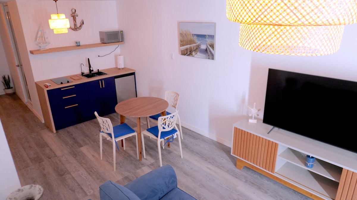 舒适的蓝色公寓,距离海滩仅几步之遥。