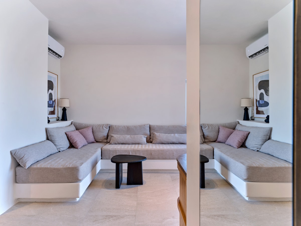 Located only a few meters from the crystal-clear waters of Xifara Beach near Naousa, this brand-new 2-bedroom luxury property offers all modern amenities for a comfortable and relaxed stay. Ideal for friends or families, the villa is just a short drive away from the cosmopolitan center of Naousa, with its charming streets and vibrant nightlife. Here, you can discover the local culture, indulge in delicious Greek cuisine, and find unique treasures in the boutique shops!