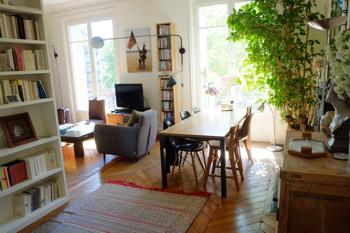 Mon appartement à vue sur Canal St Martin/proche du Marais/République/Les Galeries Lafayette/Bastille. Parfait pour les couples, les voyageurs d'affaires et familles avec enfants et Bébé! Appt 70m2 lumineux-beaucoup de charme-quartier typiquement parisien-commerces de bouche &petites boutiques. Gd salon, 2 chambres Queensize avec chacune salle de bain (dont 1 transformable en 2 lits 1 place).Cuisine équipée, plaques, four, micro-ondes, lave vaisselle.lave linge.