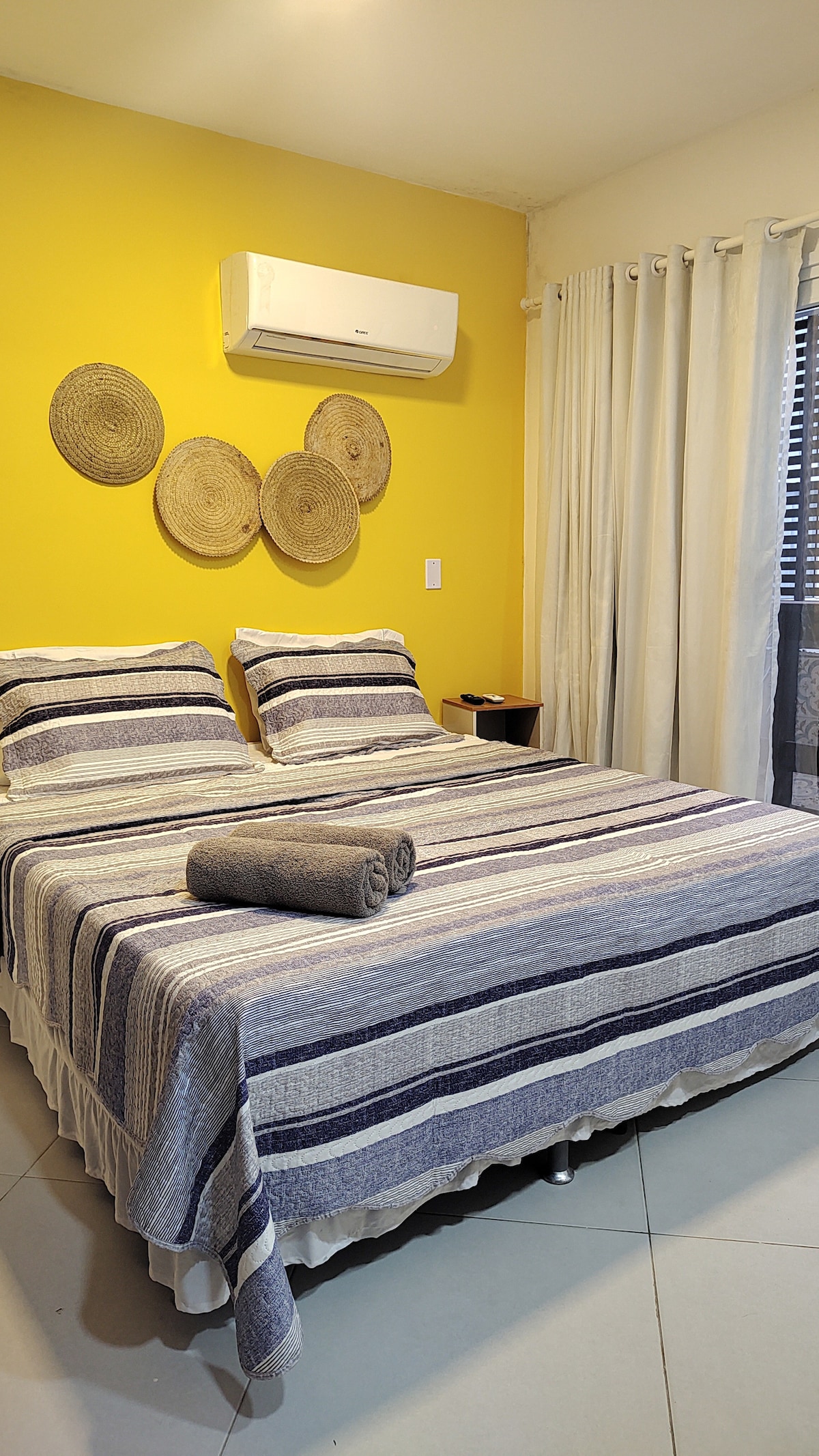 Estamos no Condomínio Mar Doce Lar, na 2ª praia, próximo dos melhores restaurantes de Morro, há 300 mts da praia. Nosso espaço acomoda confortavelmente até 4 pessoas. Temos um quarto com cama de casal e na sala, sofá cama de futon, bem confortável e espaçoso. O quarto e a sala são equipados com ar condicionado e TV 4K. Temos todos utensílios de cozinha, cafeteira, liquidificador, sanduicheira, microondas, cooktop, geladeira, ferro e secador de cabelo. Disponibilizamos roupa de cama e banho.