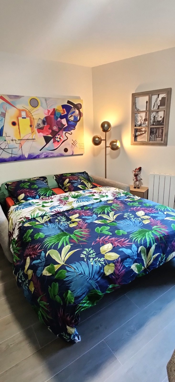 This Romantic apartment is located in what has recently become a very fashionable neighborhood out of the tourist area, yet within a 2 minute walk of Sacré-Coeur. Perfect place for a couple spending some days in Paris . Attention : the coach ca not be used to sleep ; only couple accepted