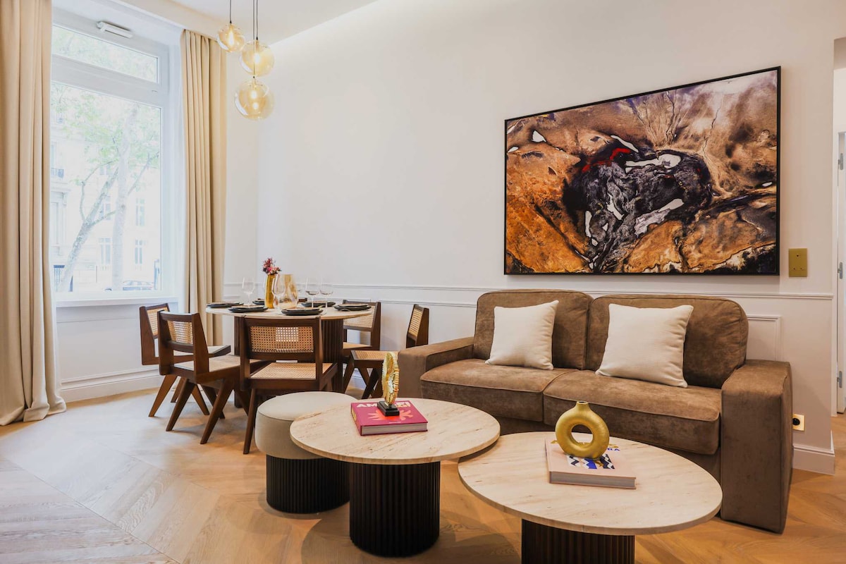 Upscale designer 140 sqm flat located in the high-end 8th district of Paris, on the Faubourg Saint-Honoré. Less than 3 min walking to the Champs-Elysées and steps from the Presidential Palace and Paris fanciest shops... Large 2-bedrooms with 2-bathrooms, a living room and a dining room within walking distance to major attractions and the best gourmet landmarks. The flat comes with a 5-star concierge service to answer all your needs and make you feel pampered!