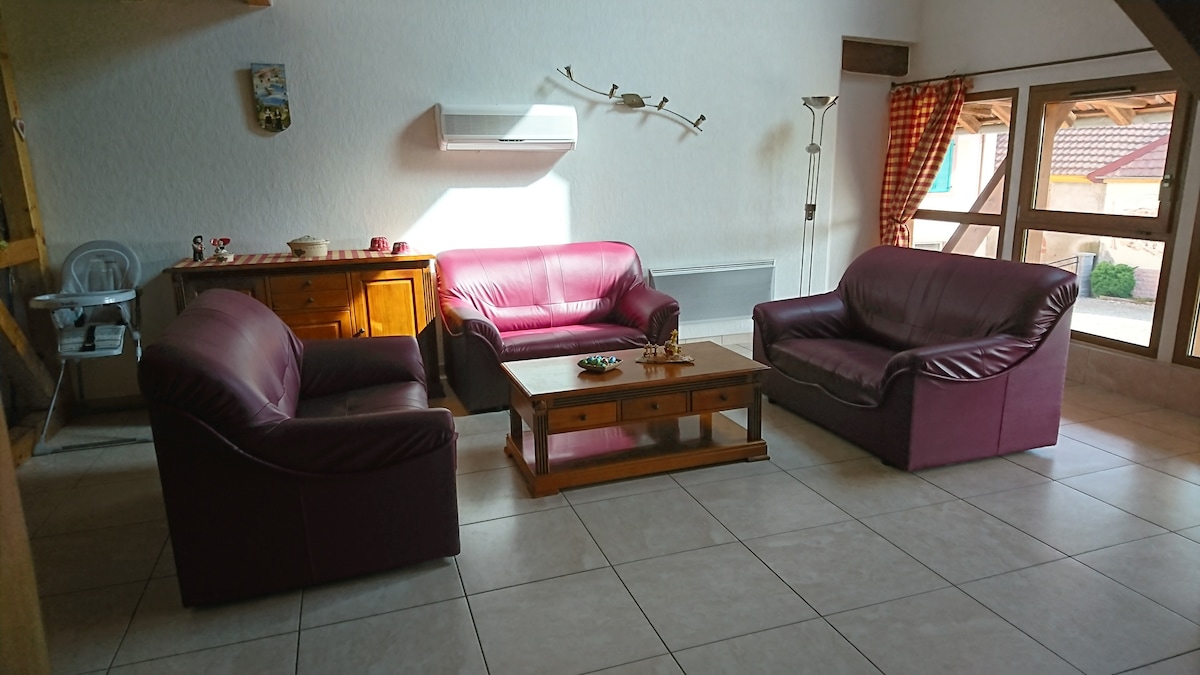 Nous vous proposons de séjourner dans un jolie appartement en duplex, classé deux étoiles, situé dans une ancienne grange, le tout dans un charmant petit village alsacien au calme. Vous serez idéalement situé pour visiter notre région. Mulhouse se trouve à 5 min en voiture, Belfort 20 min et Colmar et la route des vins à 25 min. A quelques mètres du logement vous pourrez trouver une boulangerie et un restaurant. A bientôt et au plaisir de vous faire découvrir notre région.