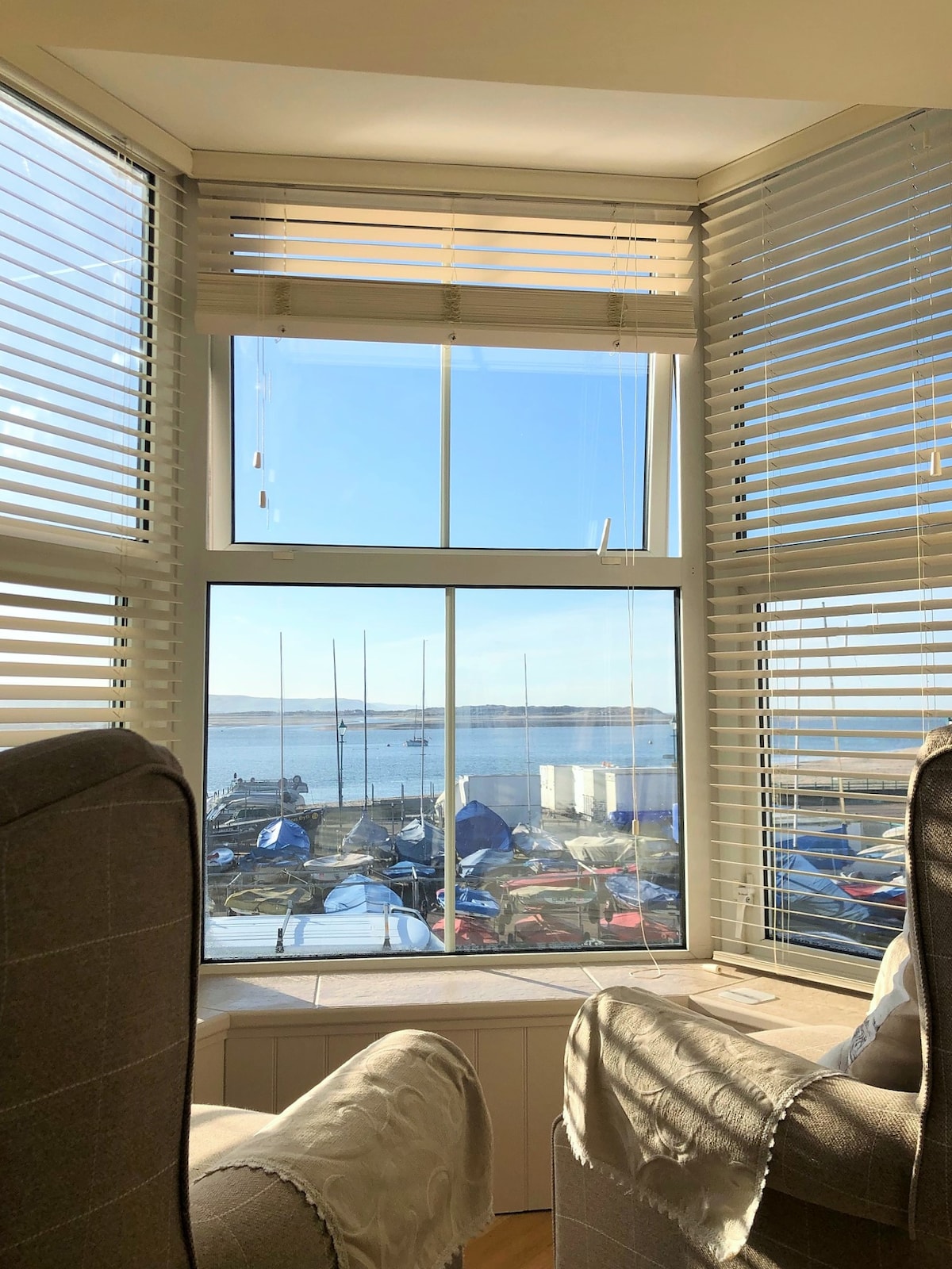 Ideally located on Aberdovey seafront with beautiful sea and Mountain views. The sandy beach is just opposite. Shops and restaurants a short level stroll away. Relax in your bay window watching the people and the tide come and go. Our 2nd floor sea view apartment has kitchen, dining and living area at the front. Separate bedroom at the rear has a comfy Superking double bed. En-suite shower room. Free parking pass included. NOT PET FRIENDLY sorry but our Boathouse and Lower Deck apartments are