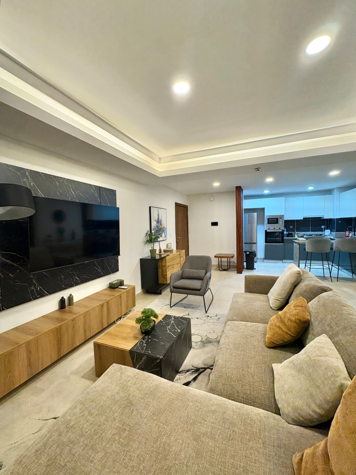 ✅️ Top 5% most loved homes on Airbnb. ✅️ Free daily cleaning. ✅️ 24-hour security. Profitez d'un logement élégant et central dans la ville et glissez-vous dans l'ambiance cosy de ce charmant quatre-pièces en Zone 4. Les bonnes ondes sont à l'honneur dans une harmonie d'art,de musique, et d'or où triomphent la douceur et la lumière.