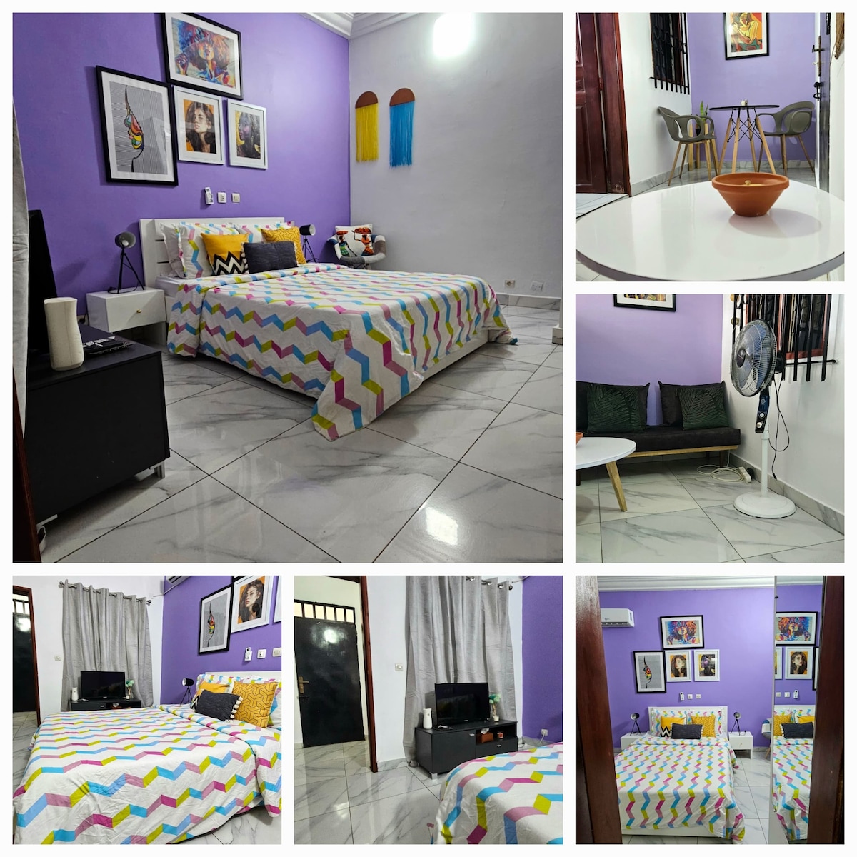 🏅Top 10% most loved homes on Airbnb. Enjoy a stylish 3-bedroom apartment in the heart of Zone 4. Bright, elegant, and cozy, it features tasteful decor, soft tones, golden accents, and local art. Perfect for relaxing or working remotely, with hotel-quality bedding, a fully equipped kitchen, and daily cleaning included. 24/7 security ensures peace of mind during your stay in one of Abidjan’s most vibrant neighborhoods.