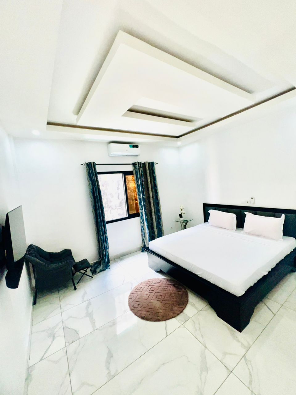 Akwaba ! Ce logement élégant se situe à Cocody Angré les Oscars. L'un des quartiers les plus chics de la ville d'Abidjan. Il se situe également à proximité de destinations incontournables. Pour cet hébergement, nous offrons le petit-déjeuner, et 20% de réduction sur tous les menus du restaurant moonlight.