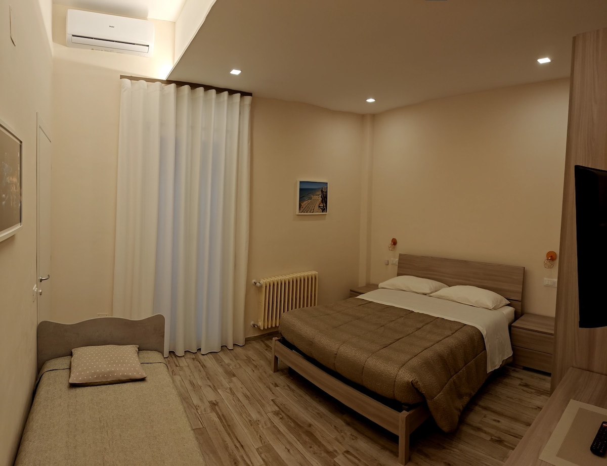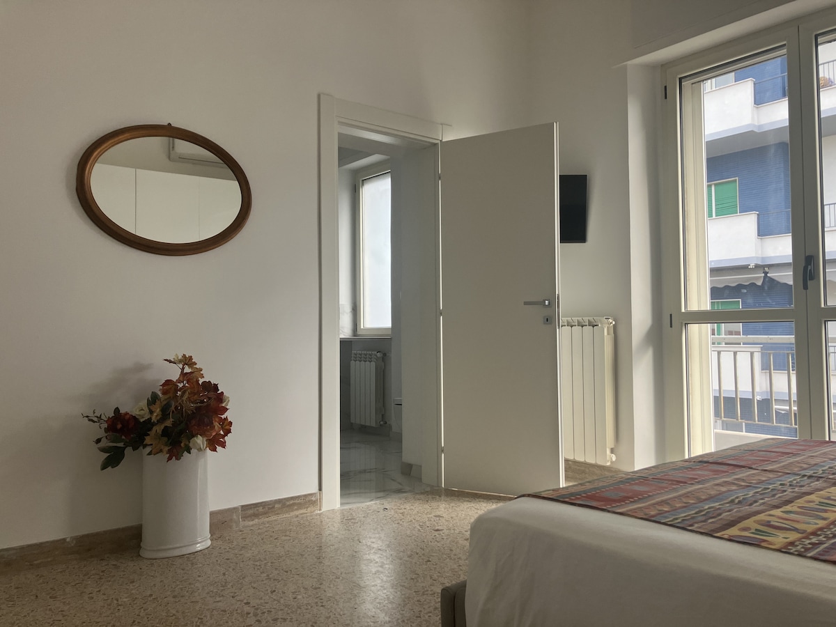 at the ‘B&B mare mio’ you stay in a splendid sea-view flat on the second and last floor of a 1950s building, with reserved car parking, just a few steps from the beach with a beach umbrella reserved for you, next to the ‘strada parco’ with its characteristic Wednesday street market, 1 km from the shopping promenade with various shops and the night ‘movida’ in the pedestrian precinct and, for our welcome guests only, conventions/immediate discounts at local activities.