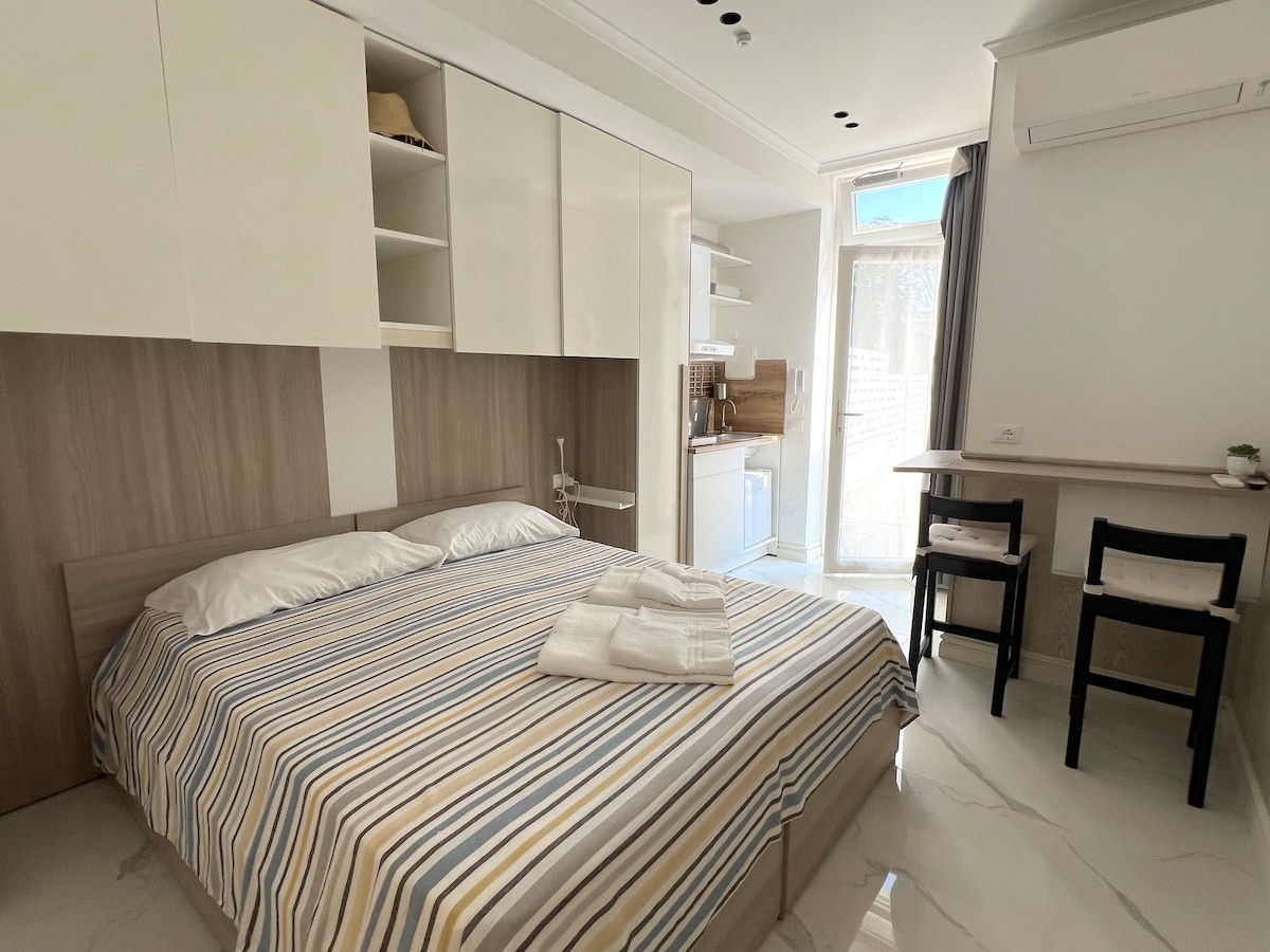 “Sovramare - Posidonia” is a brand new modern and functional studio apartment on the ground floor and just a few steps from the sea, ideal for your holidays or a short stay! Just a stone's throw from the sea, this welcoming studio apartment offers you everything you need for a relaxing and comfortable holiday. Located on the ground floor, this space offers a lovely kitchenette, a comfortable double bed for your deepest rests and a modern bathroom with a shower.