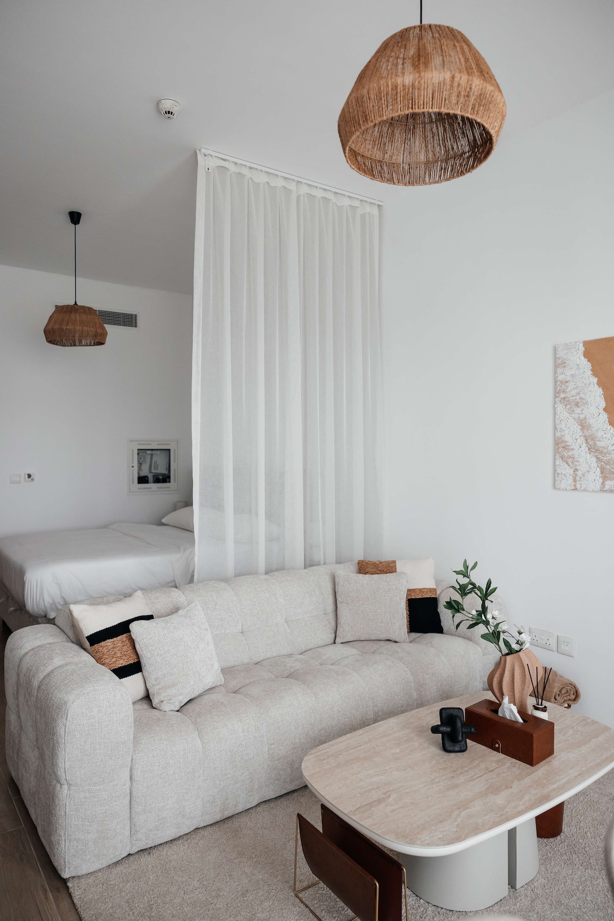 Welcome to AYLA Homes Relax in a luxurious apartment with pristine sea views! • Contemporary 1,100 square foot 1-bed apartment • Queen-size bed ensuring restful nights • Elegant living room with UltraHD Smart TV and dining space • Fully stocked kitchen with Nespresso machine and all cooking essentials • Spacious en-suite bathroom plus a guest restroom • High-speed Wi-Fi included • Mall located just downstairs (40+ shops) • World class amenities • One complimentary parking space included