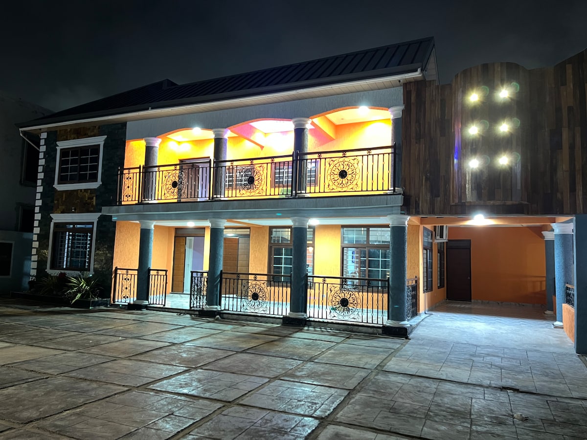 Welcome to our luxurious 4-bedroom property in East Legon. Situated on a serene compound with a swimming pool, each building mirrors the other in design and amenities. Only 8 minutes to the University of Ghana and 15 minutes to the airport. The house features one ground-floor bedroom and three upstairs, all en-suite. Two primary bedrooms boast king-size beds and spacious rooms. Experience privacy, security, and tranquillity close to city amenities. Your perfect home away from home awaits….
