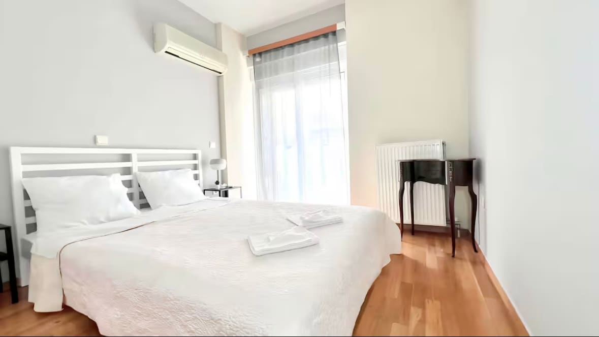 A quiet and chic, 2-room-apartment,of 66 square meters, fully equipped, VDSL internet 50Mbps, host 1 to 5 persons. Access by foot to all major archaeological sites, two blocks from Monastiraki metro station and in the commercial center of the city.