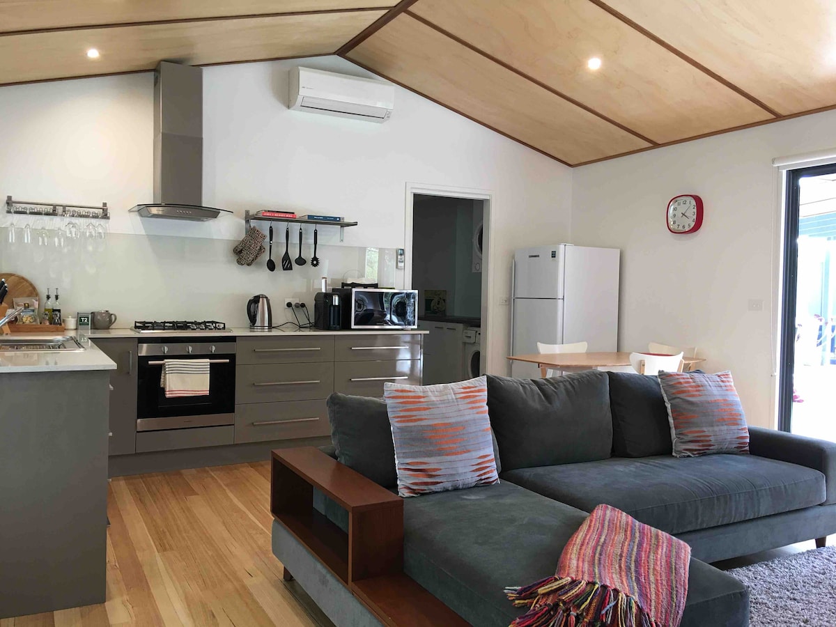 Seeking a quiet place to relax, recharge, breathe deeply? This spacious, self-contained studio, nestled on a peaceful country block is your perfect private retreat. Tranquillity is on the menu with native trees and birds to feast your eyes upon out every window. Concrete bench tops, French oak floor, a peaceful beachy vibe. The perfect base to explore the Great Ocean Road region, enjoy the stunning beaches and inspiring trails, and get amongst nature.