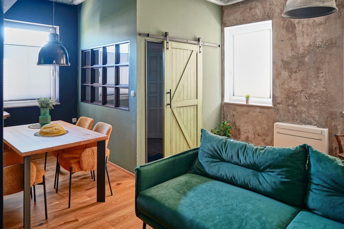 Welcome to our high-ceiling apartment near the city center, offering self-check-in, adjustable lighting, and a cozy bedroom. Enjoy a designer kitchen, high-speed WIFI, and SMART cable TV. Plus, relish an outdoor terrace and find a convenient shop just 50 steps away. Your ideal stay awaits!
