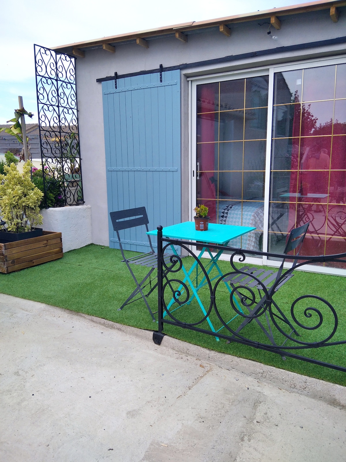 Studio Climatisé AGDE à 750m de la plage avec un grand jardin et terrain de pétanque privatif Studio d'environ 25 m² Lit 2 places 140*200cm Canapé Cuisine équipée (four, lave-vaisselle, micro-onde, grille-pain, cafetière, bouilloire, frigo) Nespresso Salle de douche+WC Grande Télé Climatisé Extérieur privatif Terrain de pétanque grand Jardin Terrasse avec table et 4 chaises d'extérieures 2 transats 1 barbecue weber Inclus dans le prix : - Nous fournissons draps et serviettes de bain - wifi