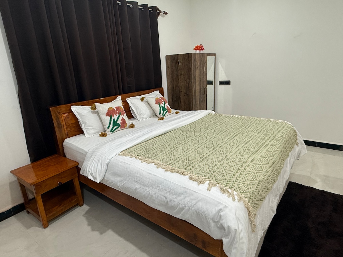 A tranquil and stylish studio apartment nestled in the close Vicinity of Palolem Beach. Designed to provide a serene and harmonious space and thoughtfully furnished to create a cozy and comfortable atmosphere,minimalist yet modern interior features warm accents, sleek furnishings and ample natural light that floods in through large windows offering a bright and airy ambiance throughout. Eutierria boasts a comfortable King-sized bed and fully-equipped kitchenette and a functional workspace