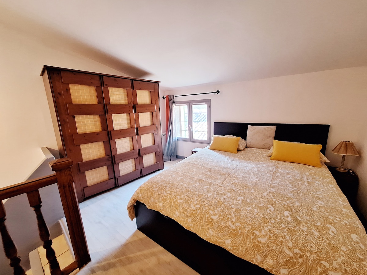 Au pied des Alpilles, proche du Luberon, d'Avignon, St Rémy en Provence, Gordes, nous vous proposons une maison de 32 m2, entièrement rénovée en duplex R+1 ( escaliers) pour 2 à 4 personnes . Elle se compose d'un séjour cuisine avec canapé convertible, d'une chambre avec lit Queen size 160x200, d’une salle de douche avec wc. secteur calme en périphérie centre village, proche église, à 300m du massif des Alpilles. Stationnement facile et gratuit dans la rue à quelques mètres du logement.