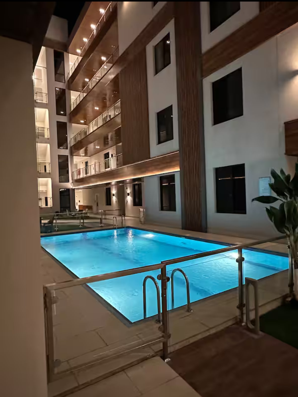 شقة عائلية أنيقة بمدخل خاص، ساحة داخلية ، ومسبح خاص يوفّر أجواء من الخصوصية والاسترخاء التام. تتكوّن من غرفة ماستر فسيحة بسرير مزدوج بإطلالة مباشرة على المسبح، وغرفة إضافية بسريرين مفردين، إضافة إلى صالة مريحة، مطبخ ، ودورتين مياه. تقع في قلب الخبر الشمالية، بالقرب من شارع الأمير تركي، كورنيش الخبر، وأشهر المطاعم والمرافق الحيوية