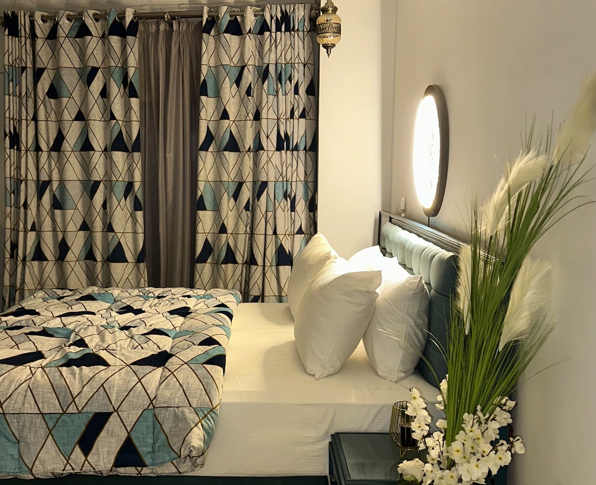 The Osiris Serenity Room offers a touch of luxury and peace. Designed with soft lighting and calm tones, this room reflects the timeless energy of Osiris the symbol of rebirth and harmony. A perfect choice for travellers seeking a peaceful retreat near the Pyramids, with stunning terrace.