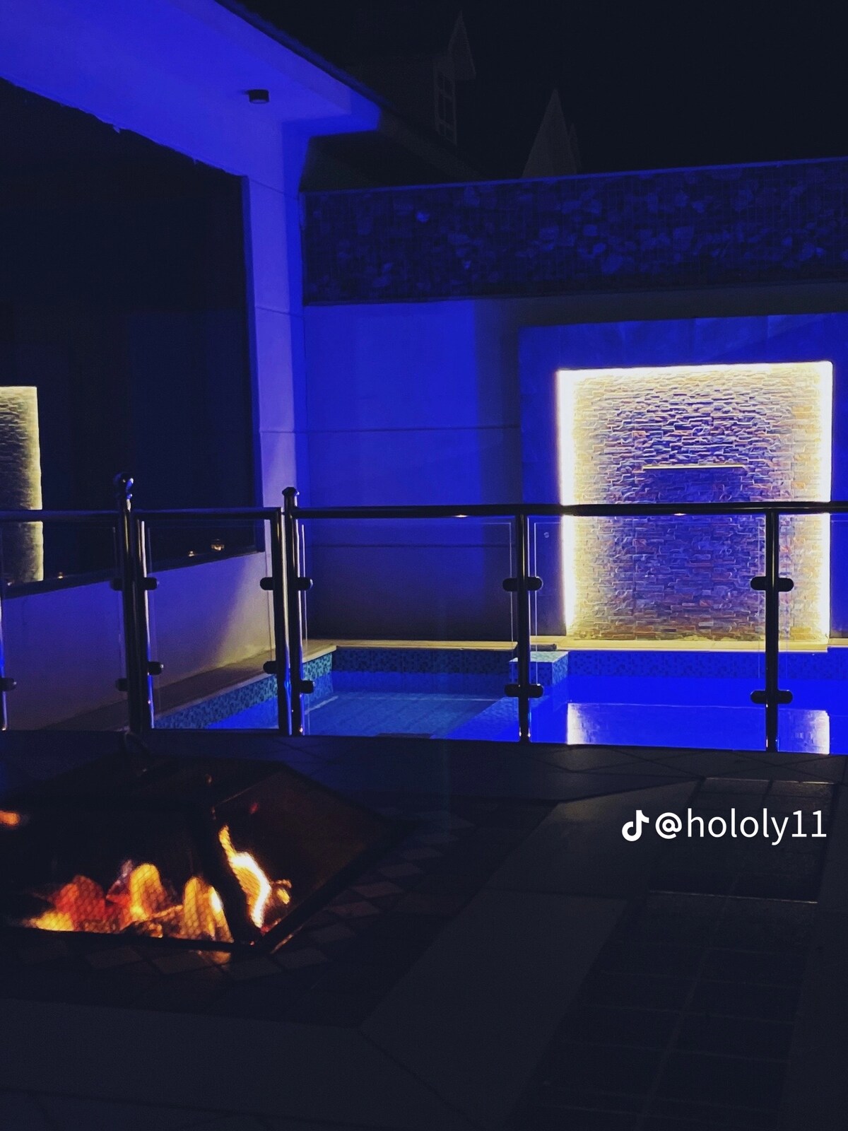 انعم بالهدوء والاسترخاء والخصوصية بصحبة عائلتك في هذا المسكن الهادئ المتكامل الذي يحتوي على غرفتين نوم ومجلسين وصالة بشاشة ذكية ومطبخ متكامل بفرن وثلاجة وغلاية ماء ومايكرويف وغسالة ملابس وفناء واسع يحتوي على مسبح وألعاب أطفال .
