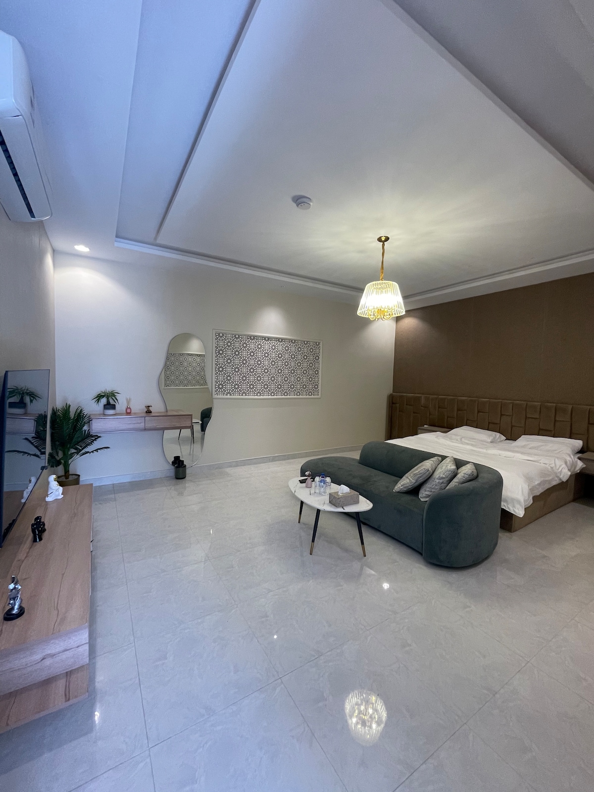 Latina (an apartment) has 2 bedrooms, 3 bathrooms, Andalusian room, a Saudi traditional room, 2 outdoor places (patios). ◾️Alharam is 10-15 minutes away by car. ◾️The nearest grocery store and laundry place is 1 min walking distance. لاتينا (شقة وليس شاليه) يضم غرفتين نوم ومجلس على الطراز الاندلسي ومجلس تراثي سعودي وجلستين خارجية ومغاسل خدمة ودورات مياه. يبعد المسجد النبوي ١٠-١٥ دقيقة بالسيارة. اقرب بقالة ومغسلة ١ دقيقة مشيًا