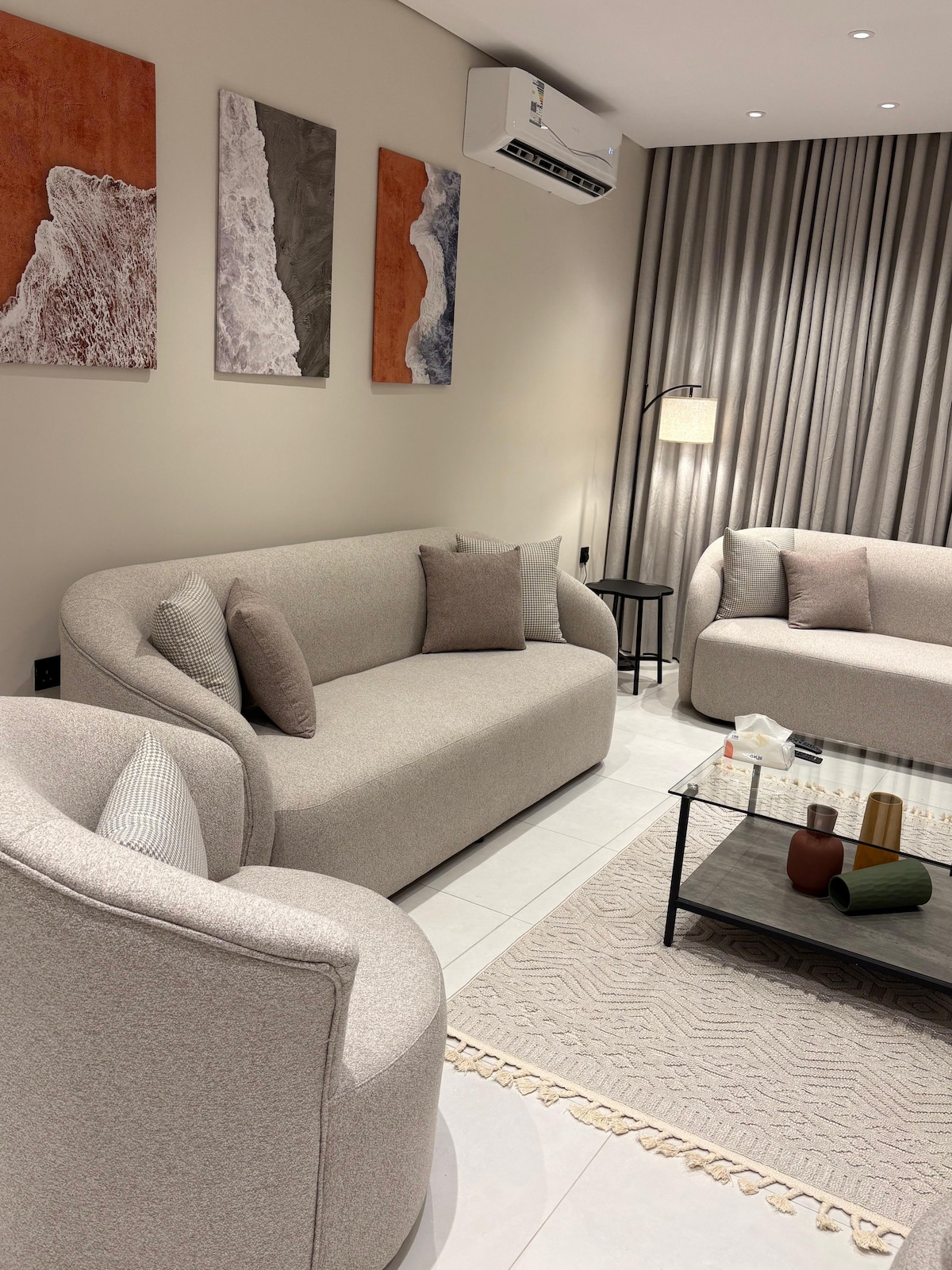 Stay in our brand-new, stylishly designed apartment just 5 minutes by car from the Prophet’s Mosque. The apartment offers a modern and comfortable space with elegant finishes, perfect for families and visitors. Conveniently located near major services, shops, and restaurants, it ensures both comfort and easy access to everything you need during your stay in Madinah.