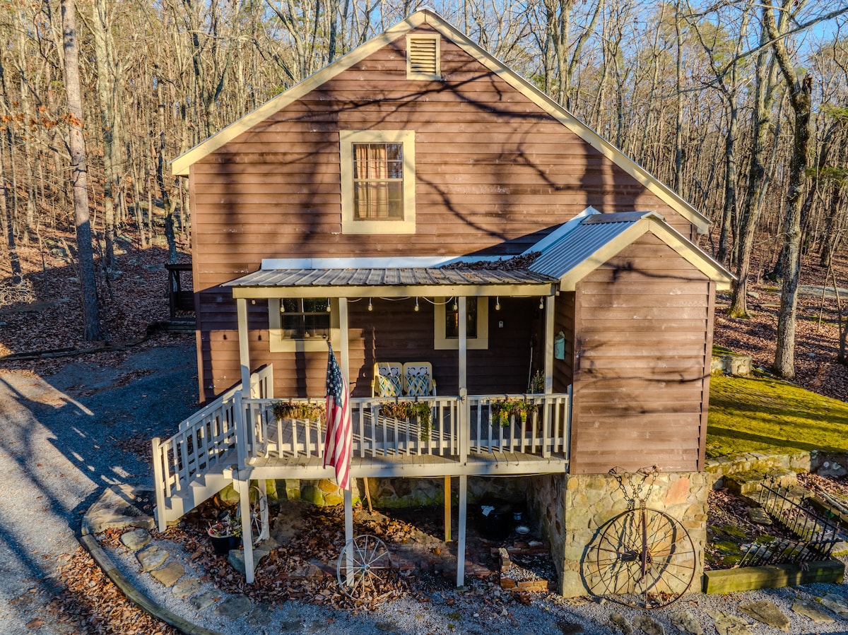 Eclectic Chalet on wooded 3 acres: Bird's Eye View - WIFI - Covered back porch - Fire Pit - Pet Friendly - Family Friendly - Near Desoto State Park Trails - Minutes from Downtown Mentone & Downtown Fort Payne