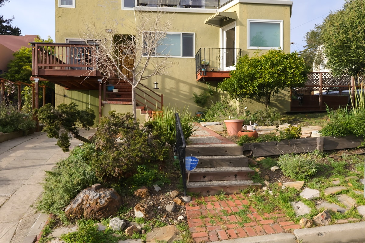 Newly renovated 100 yr old backyard studio in the heart of the Alameda island. Private fenced garden with bbq. 7 mins from Oakland Int. Airport. 20 mins to SF city by ferry. Convenient location to UC Berkeley. Close to BART, beach, parks, local markets and restaurants in walking distance. • Fully-equipped, self contained studio, with cooking basics, microwave, airfrier/oven, induction cooktop, coffee machine, electric water boiler, BBQ, patio. Private entrance. No share ventilation.