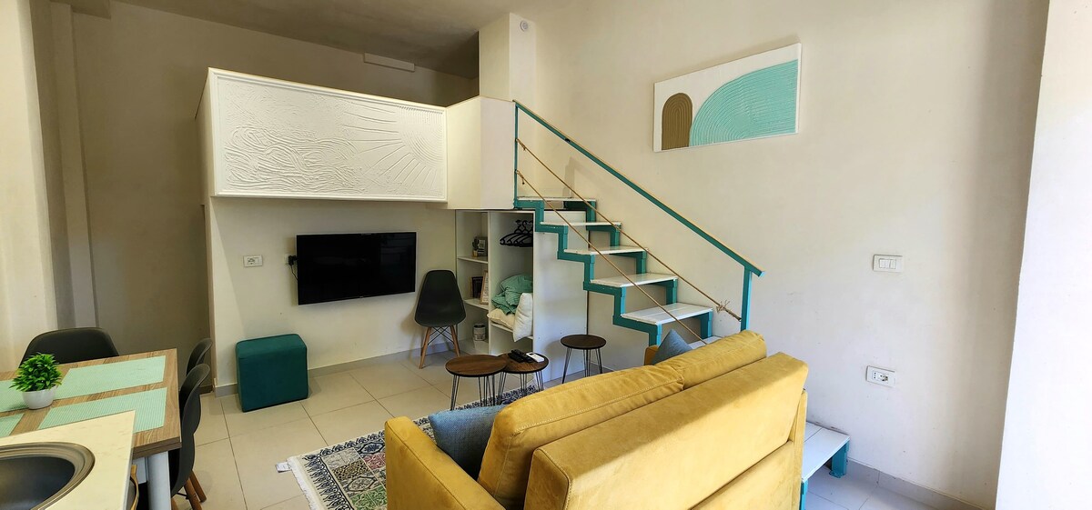 Welcome to our cozy retreat in Tirana! This charming 40 m² loft offers a unique two-level layout: a spacious fully equipped kitchen on the lower level (ceiling height: 1.95 m), and a comfortable sleeping area upstairs (ceiling height: 1.65 m), providing a sense of privacy and comfort. One of the highlights of your stay is the complimentary use of two bicycles, perfect for exploring the city like a local.