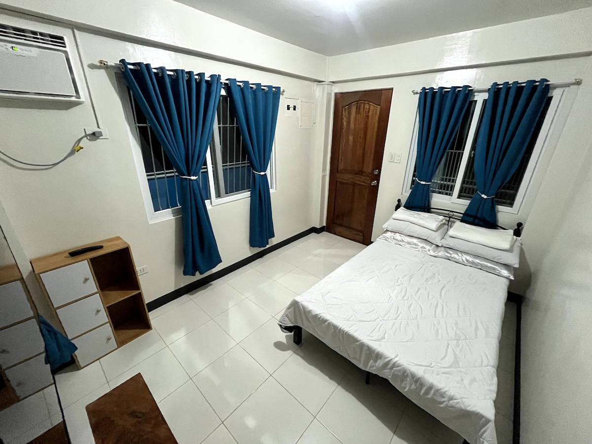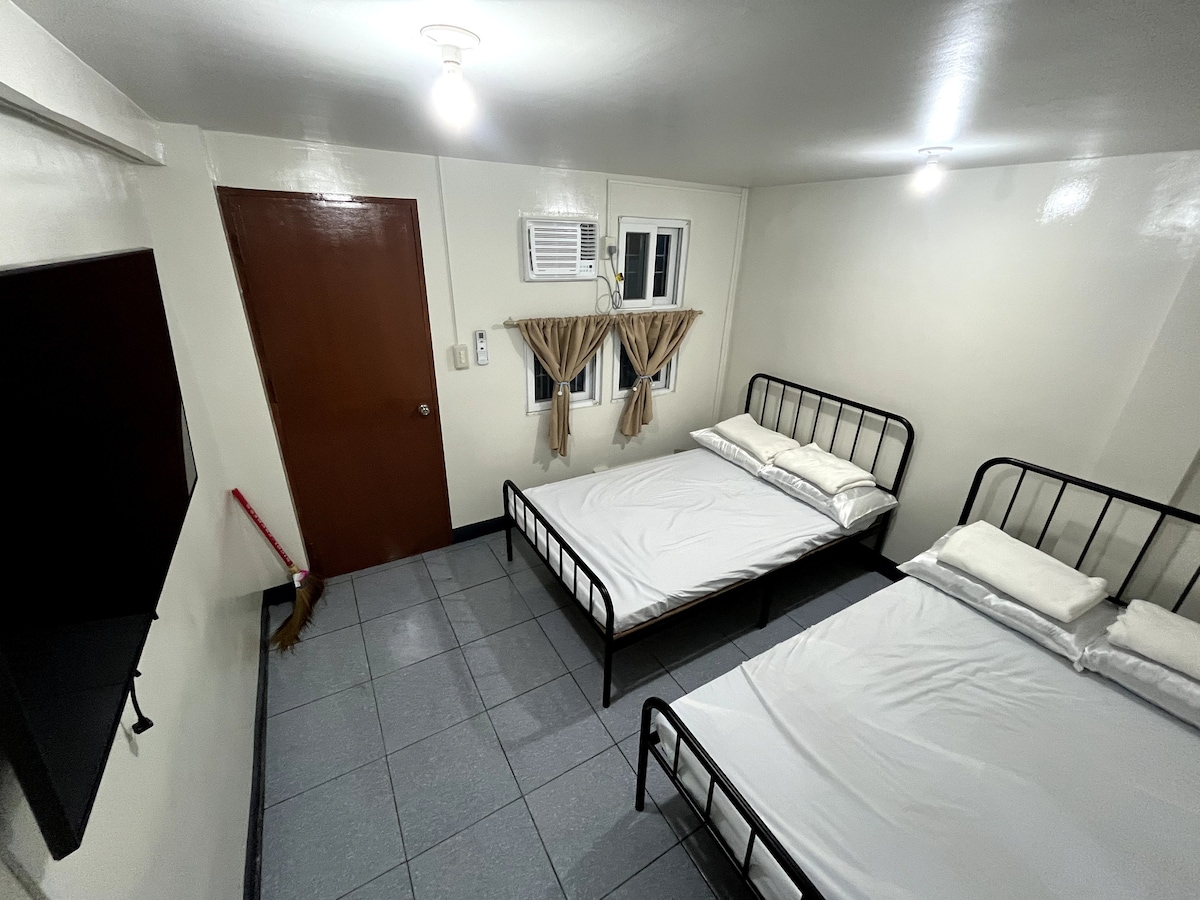 3 bedroom unit located in the 1st floor. - Good for 6 to 13 pax only. - Shared kitchen with owner - - Kitchen has gas stove & own kitchenware. - Private dining area with utensils, glass and plates - Free drinking water, - Free wifi and gated parking. - All 3 rooms has aircon & private CR. - Tissue & towels are provided. - No pool and no television - Please bring your own toiletries