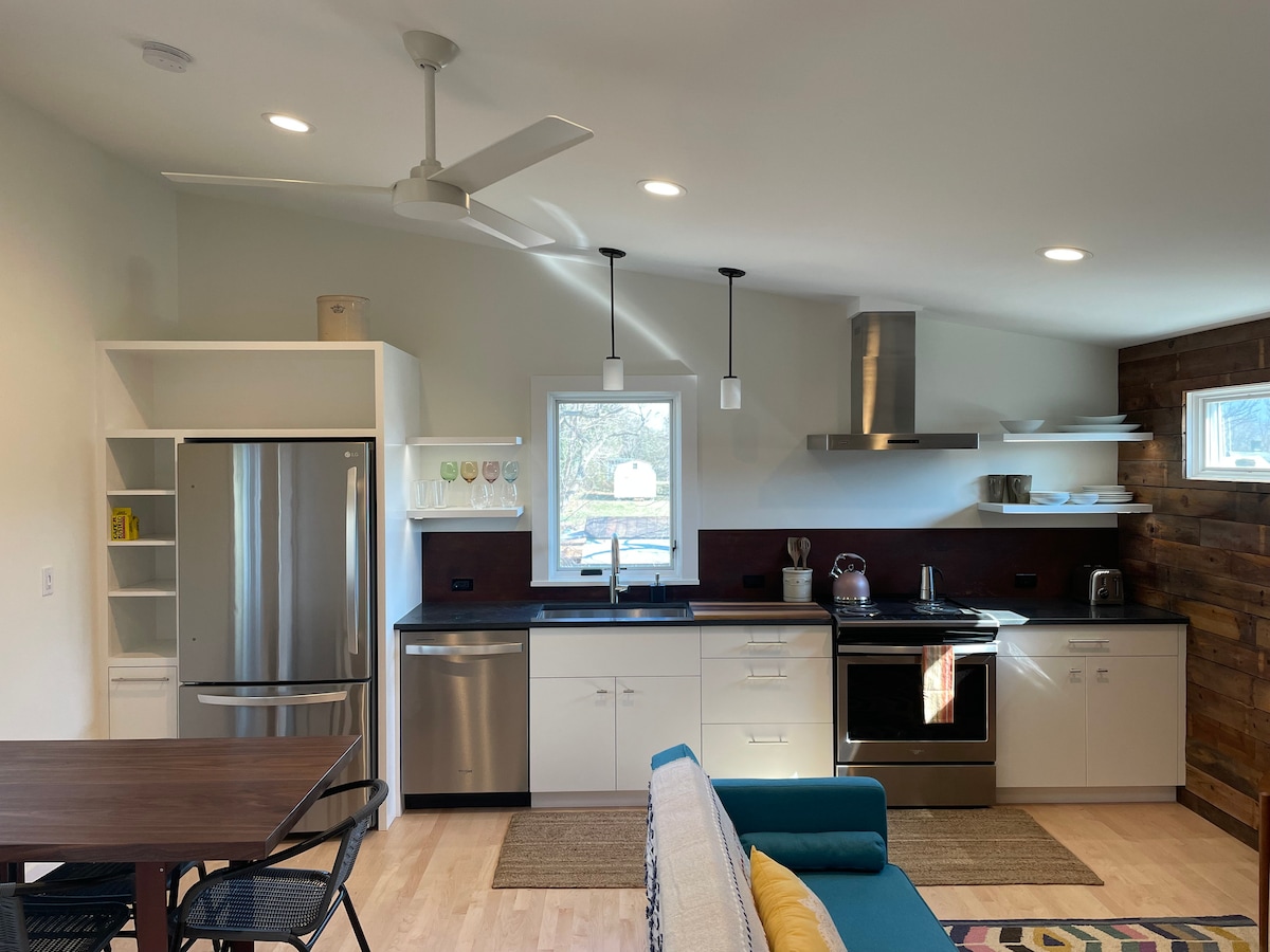 Park your car and leave it there since this flat is a 5 minute walk to Uva, 10 minutes to the downtown mall and less to West Main. It offers a lot of privacy with the help of surrounding trees and a rear entrance (opposite our house). Placed in the rear of our lot, it's perched above our studio/office and interestingly elevated above the surrounding lots and back yards. Completed in March 2022, the apartment includes high end finishes, tons of closet/storage space and no shortage of charm.