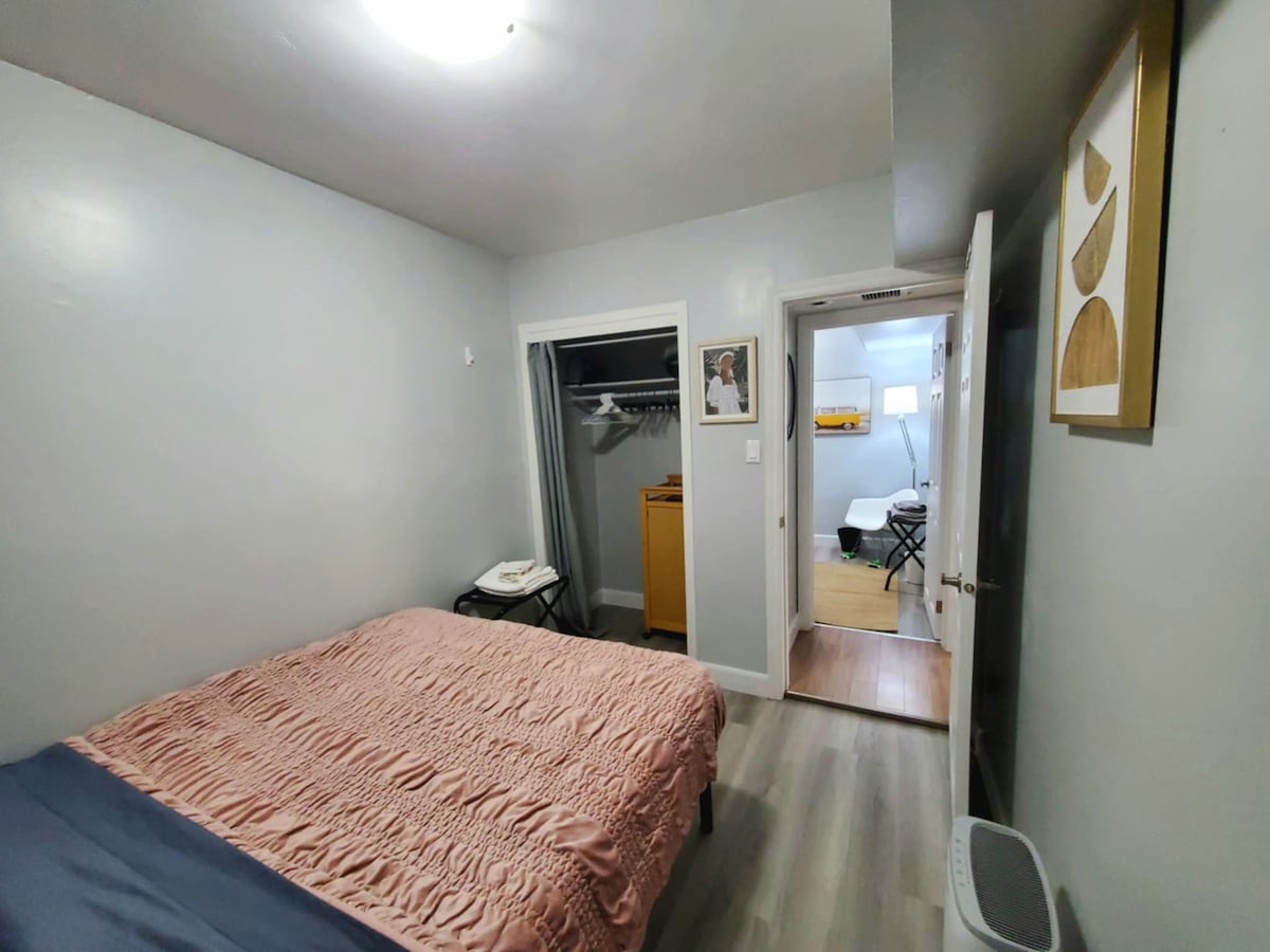 🇨🇦 Enjoy this centrally located clean boho apartment with private entrance. This is a one queen bed apartment with open floor plan. Fully equipped kitchen, full bathroom, breakfast bar, desk and dining area. You'll have everything you need for your short or long-term stay. This is located in the basement of a house. Host lives upstairs with with her dog. The apartment is completely private. Backyard access is shared.