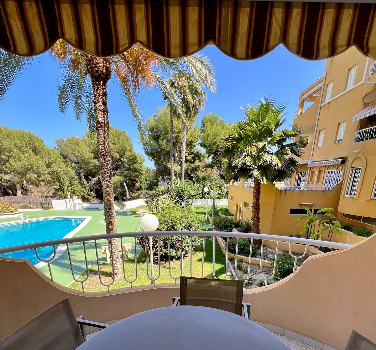Welcome to CostaFeeling. We are Robert and Marijke Horsman from La Nucia and we have a beautiful apartment for rent for 4 people in the beautiful Playa San Juan. The apartment is located in the nicest part of Playa San Juan, less than 500 meters from the beach. There is a large swimming pool and private parking within the gates of the complex. The building has a luxurious entrance and is equipped with an elevator. There is a Smart TV available. Air conditioning is available for € 7 per day.