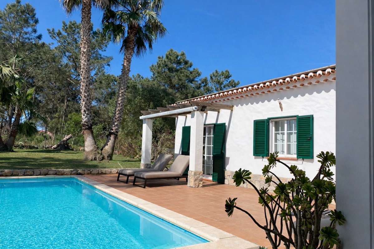 Escape to this peaceful 4-bedroom villa in Vale da Telha surrounded y nature, featuring a wide private garden, swimming pool, and a relaxing jacuzzi. Just 5 minutes from breathtaking beaches, it’s your perfect west coast hideaway. Lounge in the sun, fire up the BBQ, and enjoy bright, airy living spaces with a big modern kitchen. Ideal for families or friends seeking a luxurious, serene getaway you’ll never forget.