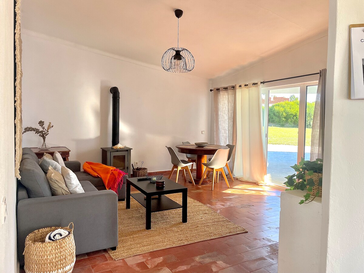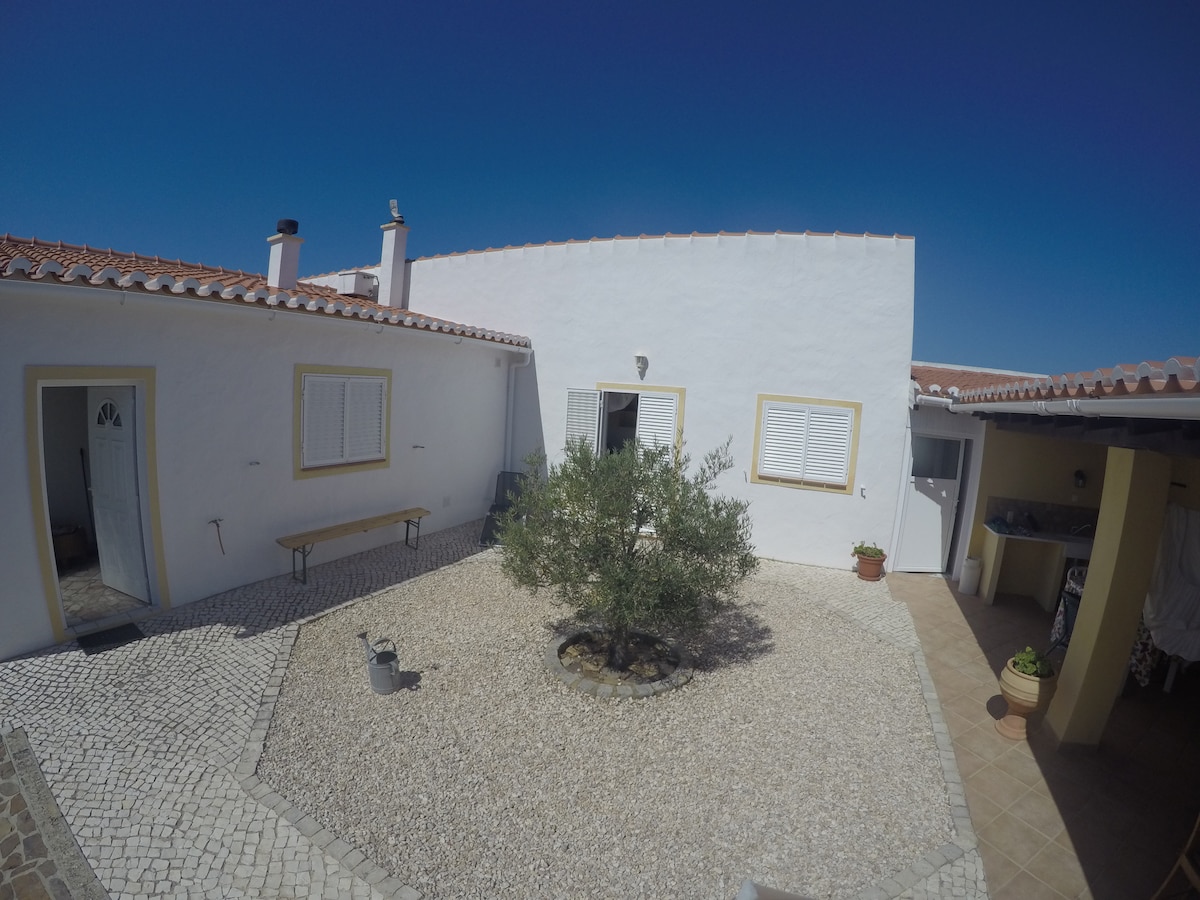 Casa geminada com espaçoso jardim, área exterior de refeições e lazer para desfrutar com a família e amigos. Sala espaçosa com lareira e sofá cama para 2 pessoas, dois quartos com cama de casal, cozinha equipada e casa de banho. A casa está localizada na Urbanização do Vale da Telha em zona calma, a 2km da praia da Arrifana e a 4 do Monte Clérigo, sendo o local perfeito para desfrutar do campo e natureza, fazer praia e surf, ou desfrutar de uma caminhada! Internet wifi.