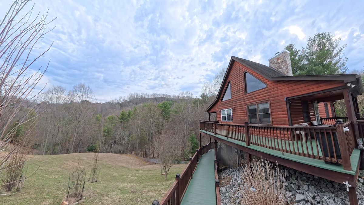 蓝岭山脉中的舒适小木屋,带木地台和热水浴缸!