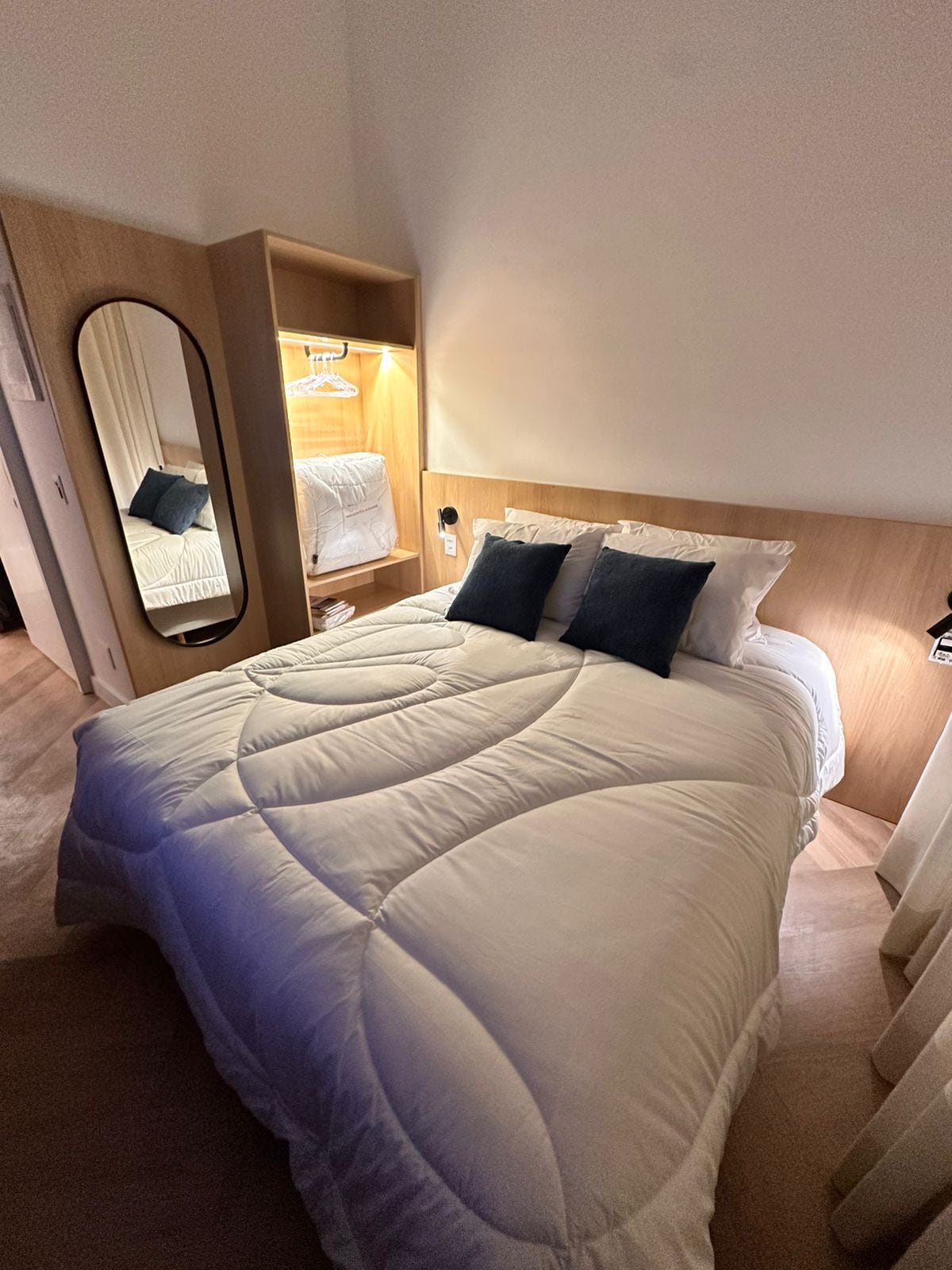 Apto novo e aconchegante, vista maravilhosa. Curta uma experiência elegante neste lugar bem localizado, à 5 min a pé do Allianz Parque. Ao lado de diversos comércios, transportes, parques, shoppings, pontos turísticos e conj empresariais. Aproveite um flat moderno com cama de casal Queen, sofá cama, cozinha, micro-ondas, maq lava/seca, TV, aut Alexa, ar condicionado e muitas outras comodidades. Tenha a segurança de um cond com portaria 24h. 1 vg de garagem rotativa (sujeito a disponibilidade)