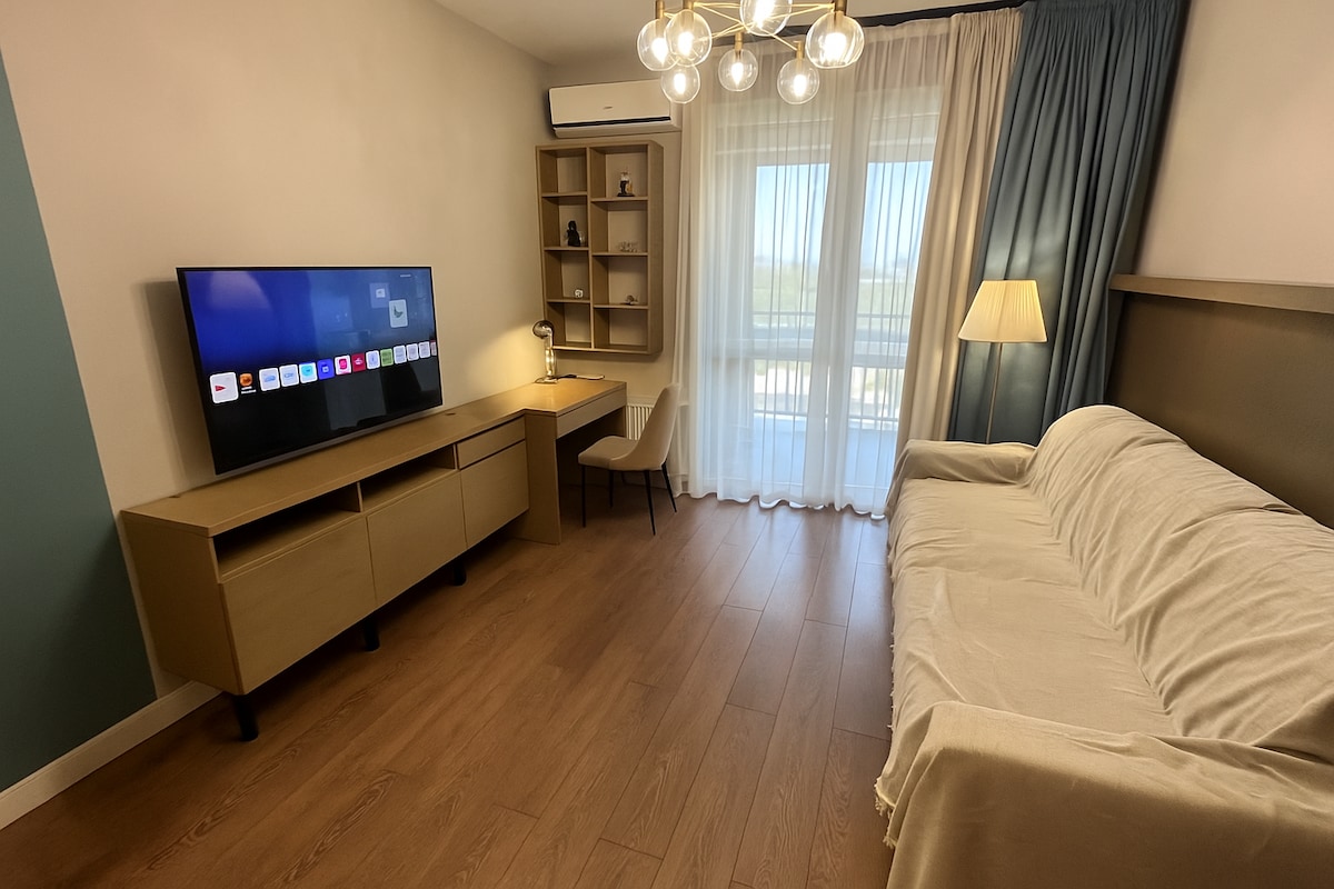 This cozy apartment on the 8th floor offers a beautiful sunset view. Just 100 meters away is a large shopping mall, and 500 meters away is the pedestrian Arbat Street, where you can enjoy the city’s vibe. The area has plenty of cafés, restaurants, and shops — ideal for fans of shopping and good food. The convenient location makes it easy to get around the city. A gated courtyard provides a safe and comfortable space for families. The apartment is fully equipped for a relaxing stay.
