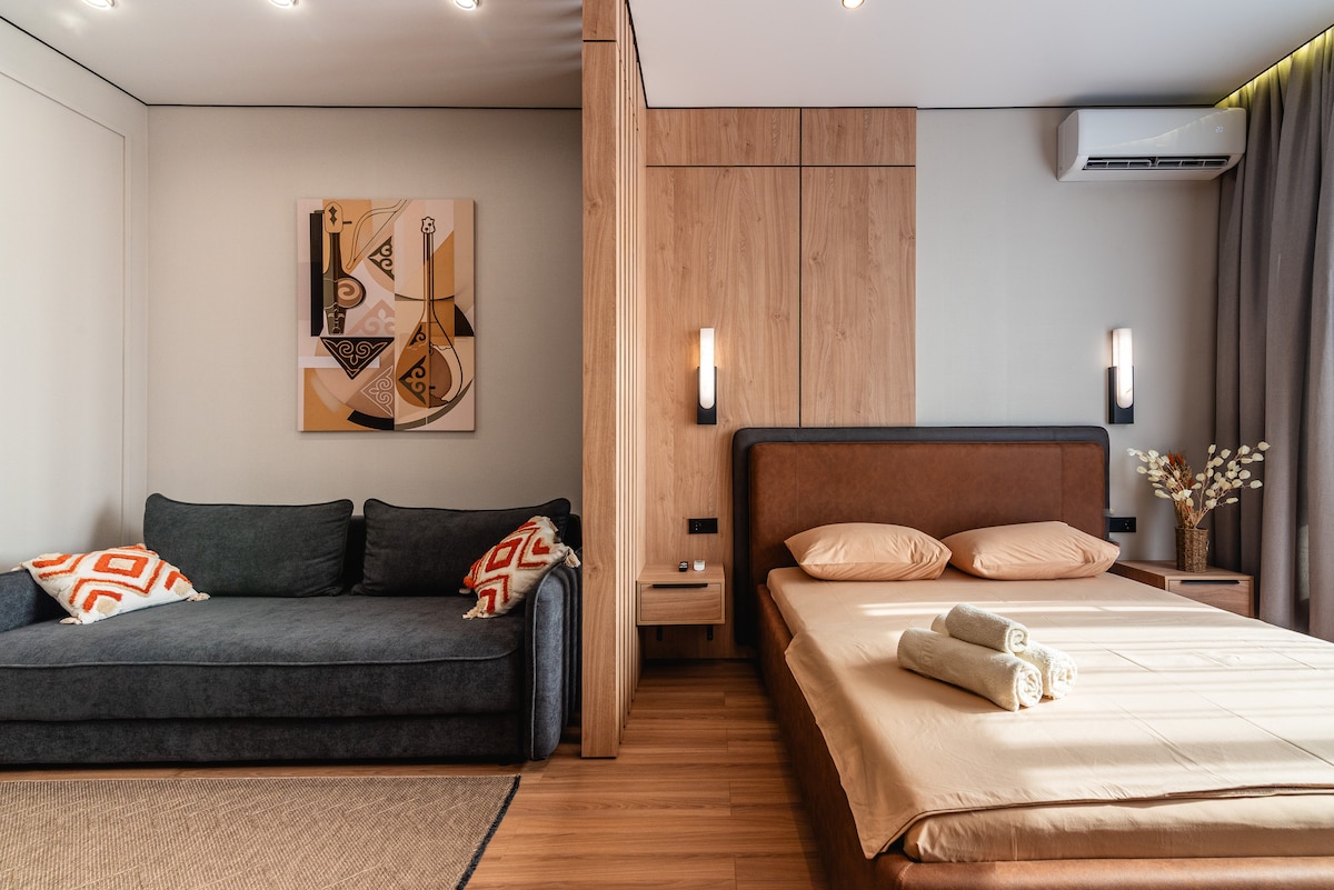 The best location to feel vibe of Almaty. The very center where everything is within walking distance! Near the shopping center, cafes, cinemas, 28 Panfilov's park, Gorky park, Zoo, Green Bazar, symphony, opera, etc. The amenities: dishwasher, washing machine, coffee machine, air conditioning, TV, 2 internet providers Kazaktelecom 500mb & AlmaTV 100mb, iron and SMART-LOCK. Towels and shower accessories are provided for all guests.