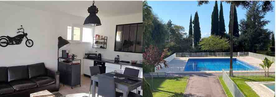 Petit STUDIO très bien équipée avec entrée et parking privé dans une grande Propriété avec piscine et jacuzzi chauffés du 15 avril au 30 octobre . La piscine extérieur et jacuzzi ainsi que le jardin sont partagés mais assez grand pour profiter chacun son espace de tranquillité . Je vis dans la bastide principale . Un Havre de Paix entouré d oliviers centenaires . A 35 minutes de l aéroport de Nice et divers villages provençaux et 14km de Cannes . Tele grand écran /abonnement Netflix
