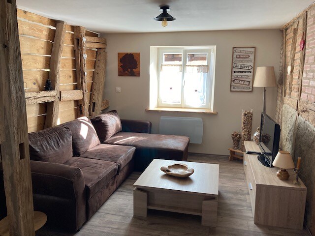 Charmant duplex dans notre séchoir à tabac reconvertie et aménagé en logement. Il dispose d’une chambre au rez-de-chaussée avec deux lits simples, d’une chambre climatisée avec un lit double à l’étage et d’une mezzanine avec deux lits simples. Profitez d’un espace confortable et lumineux avec une cuisine équipée ouverte. Notre village, entre Strasbourg et Colmar, est proche de l'Allemagne, à 10 Min d'Europa-Park, des nombreux marchés de Noël alsacien et du Haut-Koenigsbourg.