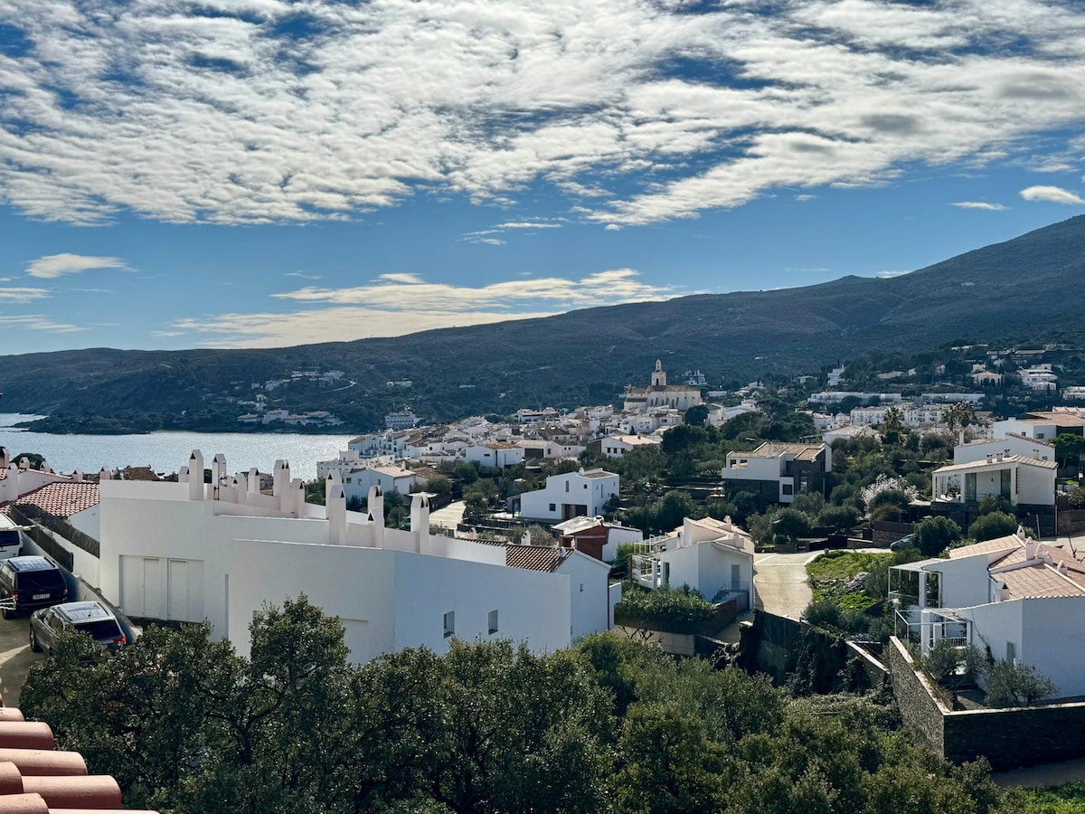 75m2 loft apartment with modern and unique architecture. Carefully designed, decorated with vintage-style furniture and art carefully selected over the years. This combination, along with a spectacular and impressive view over the bay of Cadaqués, makes it absolutely unique. It is located just 1 minute walk from Es Poal beach, about 45m away. PET friendly. We love animals. Please inquire privately about the extra cost per night for your adorable and furry friend.