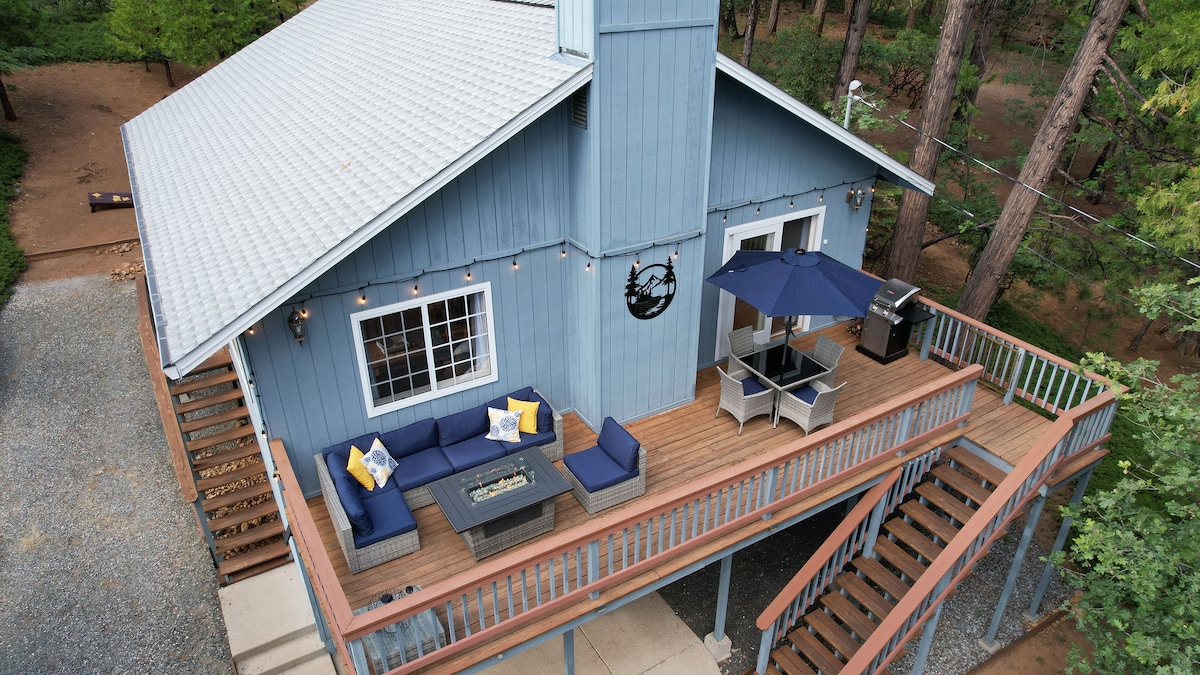 Take it easy at this unique and tranquil getaway! Experience unfiltered natural beauty at this dream cabin in the mountains. Located on a quiet cul-de-sac on a large wooded lot, your hideaway is surrounded by the Eldorado National Forest. Wake up to the harmonic sounds of the birds singing, watch the deer gracefully pass by, and enjoy the chatter of the neighboring squirrels.