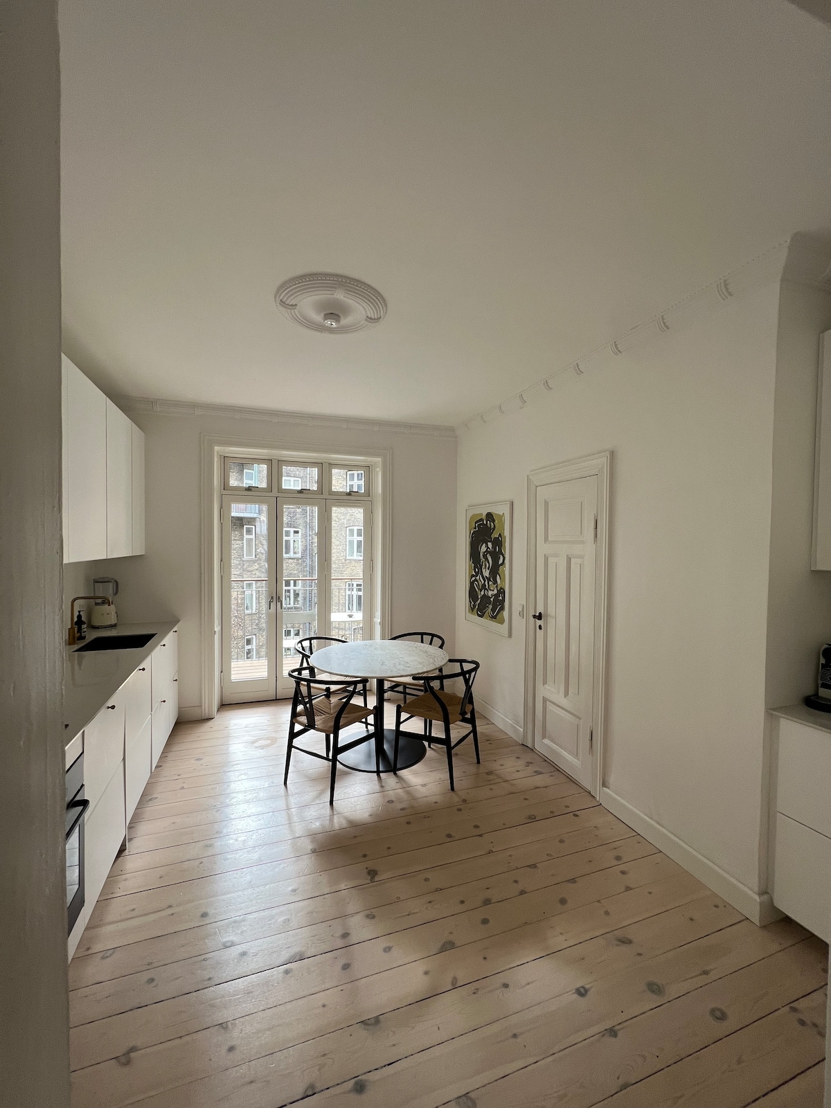 Dear Guest At first glance inside the apartment, your eyes will be fascinated by the high panels, beautiful stucco, French doors and original plank floors. The apartment underwent a complete renovation in 2018 and appears today as modern and clean, but with respect for the old architectural details. The apartment is located on the longest shopping street in Copenhagen surrounded by plenty of restaurants and shopping opportunities. You will also find many sights within a 2 km walking distance.