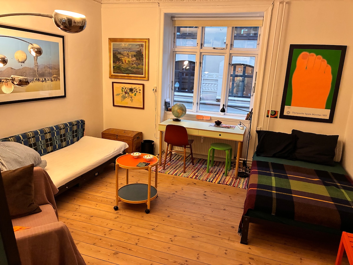 Bright, stylish flat in central Copenhagen, just 100m from the metro and steps from the Lakes. Featuring Scandinavian minimalism, original wood floors, high ceilings, and large windows that fill the space with light. Includes a cozy living room, dining area, fast WiFi, and Hue smart lighting for perfect evening ambiance. Walk to cafes, shops, and parks—everything you need is right outside your door. Prime location that will make your Copenhagen experience!