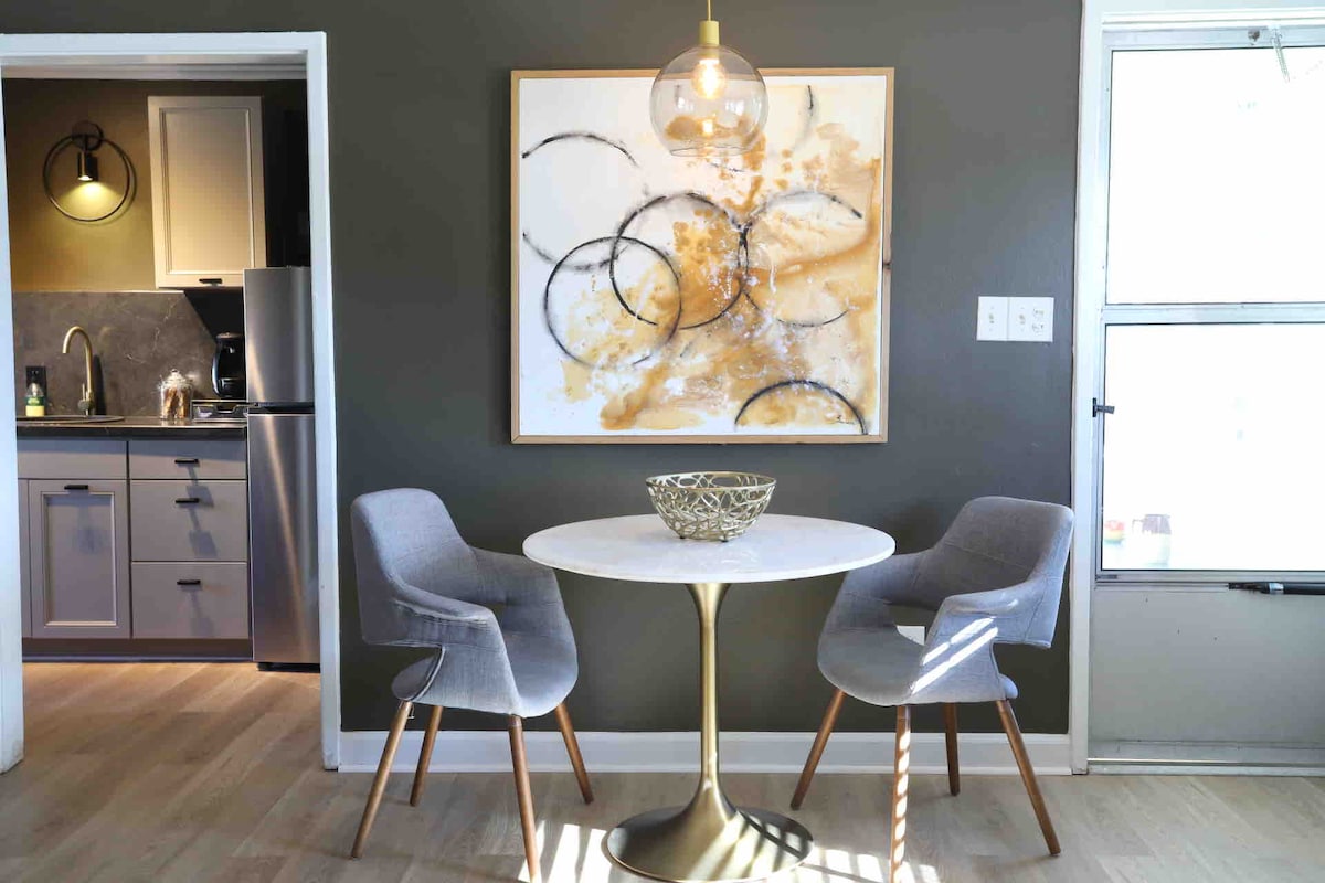 A stylish, modern, and beautiful alley guesthouse that is located just 2 blocks from Duke's East Campus and 4 blocks from downtown Durham. The apartment is located in the historic Trinity Park Neighborhood in Durham. The apartment has a top of the line finish, hardwood floors, appliances, and furniture. The loft area is equipped with a standing desk and monitor and 2 Yoga matts, and it is ideal for working professionals visiting the area. Built: 2023