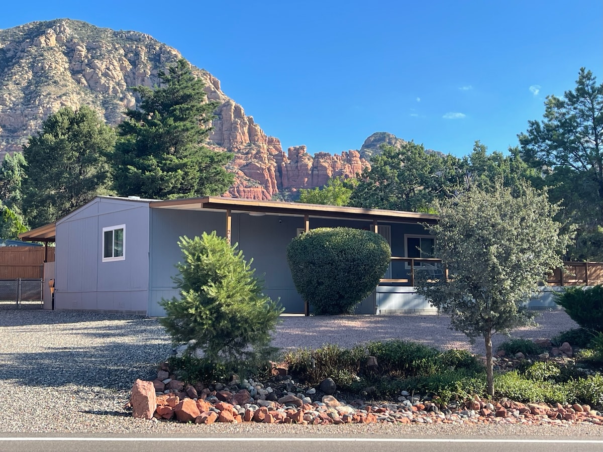 GLOWING MOUNTAIN VIEWS! West Sedona private casita at the base of Thunder Mtn. Walk to Andante trail system for hiking & biking or Amitabha Stupa for meditation. Cozy, tranquil , and convenient, our 4 room, 450 sq ft casita has private patio, kitchen, washer/dryer, central air, & off street parking. Close to restaurants & grocery store. Quiet neighborhood. Equipped for 4 guests. Dogs & cats welcome! Perfect for families w/infants, single travelers, & couples. Work friendly w/fast wi-fi.